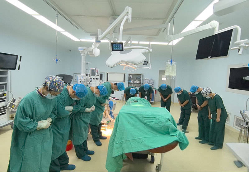 医务人员向器官捐献者小周默哀。昆明医科大学第一附属医院供图