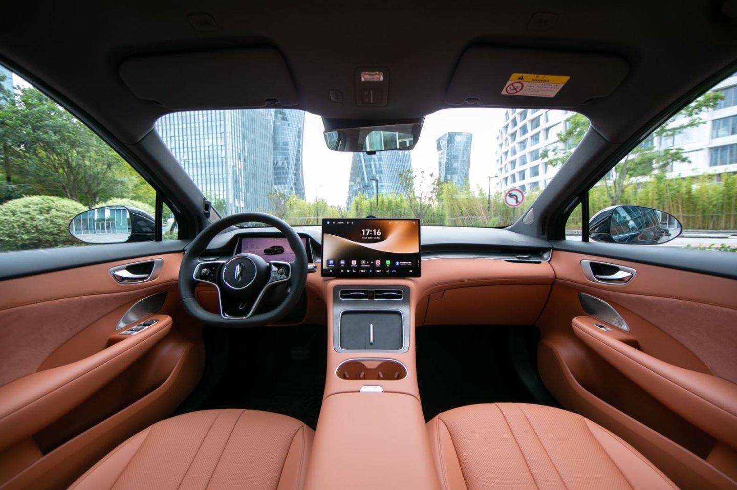 内饰方面,尚界H5同样采用当下主流的简约设计语言,环抱式的T字型座舱,嵌入式的液晶仪表搭配15.6英寸的车机大屏,同时手机无线充电以及电子怀挡等主流设计元素,也都涵盖。